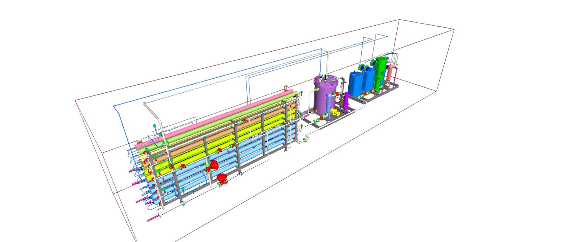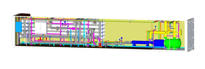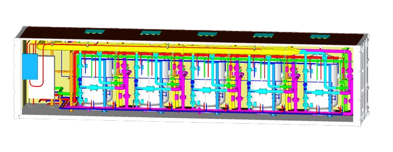 Our team brings extensive experience in designing water treatment facilities of various scales and configurations. We specialize in both compact containerized plants – where equipment is efficiently packaged to maximize functionality within limited space and large-scale conventional facilities tailored to meet complex industrial and municipal requirements. From 3D modeling and P&ID development to comprehensive technical documentation, our engineering workflows ensure precision, adaptability, and compliance with international standards.